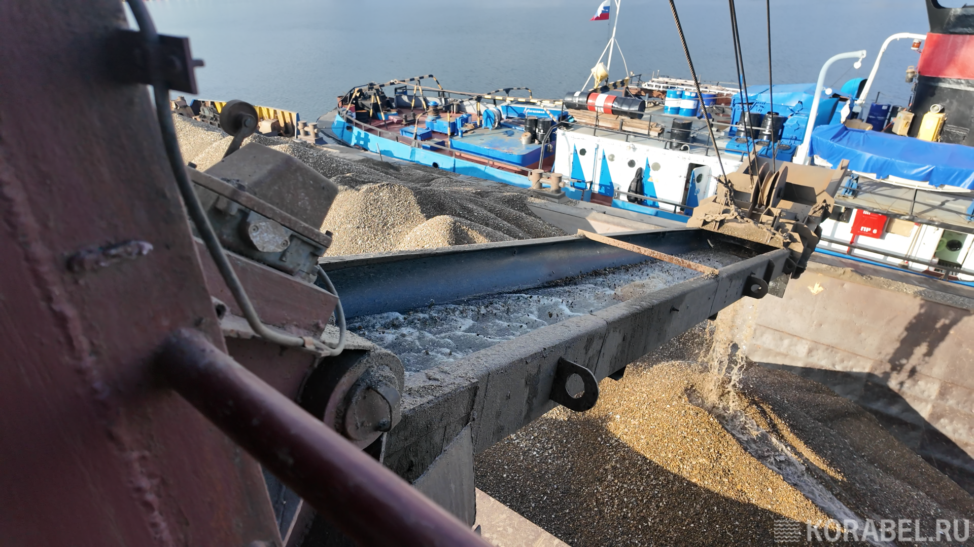 Как мы и отмечали, земснаряд может грузить сразу две баржи. На правый борт уходит песок, на левый — гравий. Всего «ДФ-5001» на выходе способен выдавать пять видов нерудных строительных материалов от обогащенного песка до гравия.