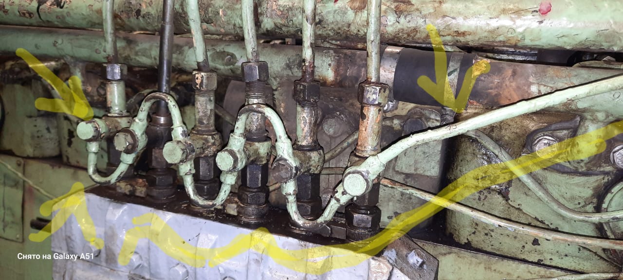 | Судовое снабжение и обслуживание | | механическое оборудование | | главные и вспомогательные двигатели | | 1 | трубопровод для контроля прорыва трубок ТНВД